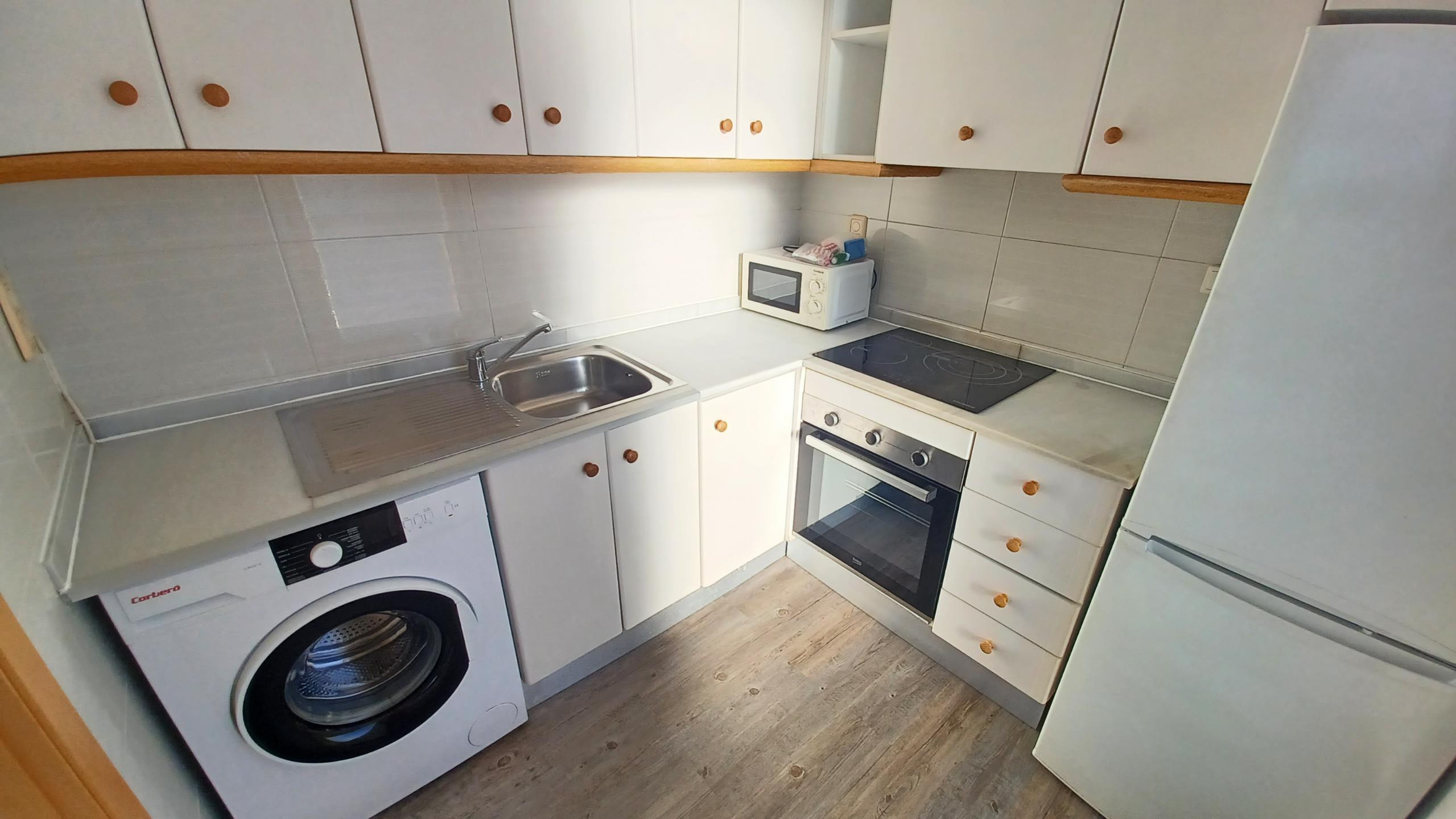 Mobiliario en la terraza, más utensilios y pequeños electrodomesticos en la cocina. La plaza del garaje es pequeña