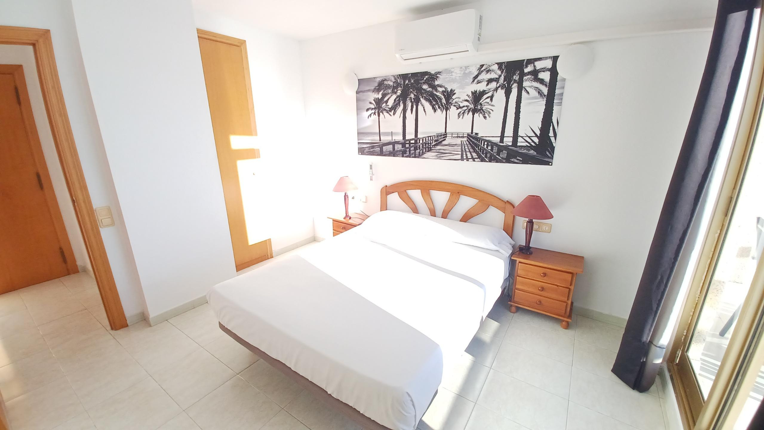 L'appartement dispose de deux chambres pouvant accueillir jusqu'à 5 adultes, avec une disposition flexible comprenant un lit double, un canapé-lit et deux lits individuels. Le séjour est équipé de la climatisation dans le salon et dans les chambres, garantissant votre confort pendant les journées les plus chaudes.